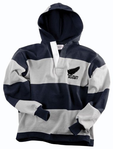 Combine the Hoodie look with the Rugby feel and you get the ultimate in style and comfort! This New Zealand Hooded Replica jersey has Barbarian 6" gray and black hoops. Embroidered with traditional team logo on left chest. Hooded. Long Sleeve. 100% Cotton. Made in North America. Available in sizes S-3X. Add for 2XL, .50 for 3XL. Don't be afraid to order up a size to get an extra loose fit.