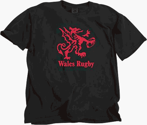 Pre-shrunk garment-dyed short-sleeve t-shirt with Wales's Traditional team logo silk-screened onto the front of the shirt. Available in Black. (Please add .00 for size 2XL.)
